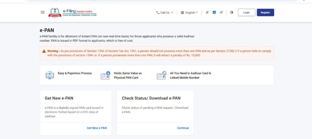 अगर आपका Aadhaar मोबाइल से लिंक है, तो आप बिल्कुल कुछ ही मिनटों में e-PAN प्राप्त कर सकते हैं।