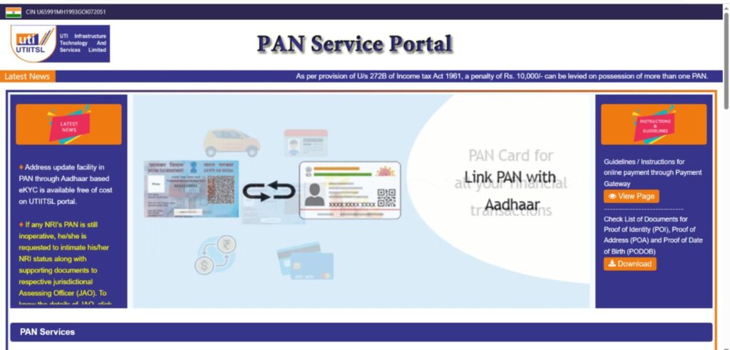 PAN Card Apply 2025 – UTIITSL भी सरकार द्वारा अनुमोदित पोर्टल है जहाँ से PAN बनवाया जा सकता है।